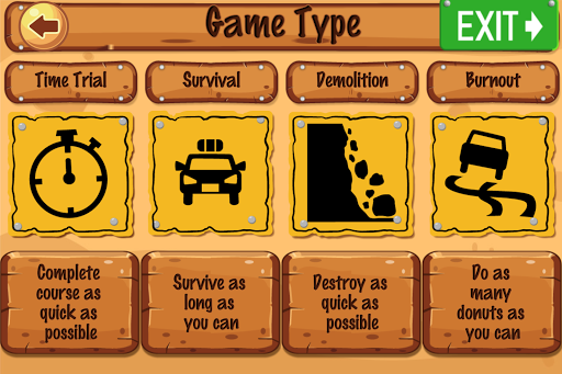 Time Trial - Complete the stages for each level as quickly as you can. Levels range from car parks, residential streets, an airport and even there is a basketball court to race around. Plus many others.