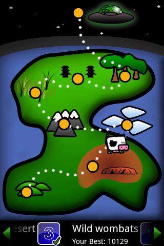 Your friends have been abducted by aliens! Use tilt controls to follow the ufo, picking up power-ups as you go, but watch you don't fall...