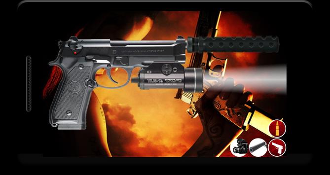 Guns, swords, machines guns, bombs, katana's and all new and old firearms . Shoot, fire, aim, reload, flash, zoom in, zoom out, blow, explode, slice, stab , do whatever you want. This app is created with fun so use it for fun with friends.