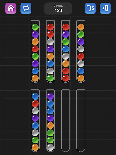 This classic color sorting game is pretty simple to play, but hard to master. Just tap to take a colored ball from one bottle and stack it into another bottle, until all balls of the same color are in the same bottle. However, there are thousands of puzzles of varying difficulty. The more challenging the puzzles you play, the more careful you need to be with each move. Each move cannot be taken lightly, or you may get stuck! This Ball Sort game is definitely the best puzzle game for you to exercise your brain and train your logical thinking.
