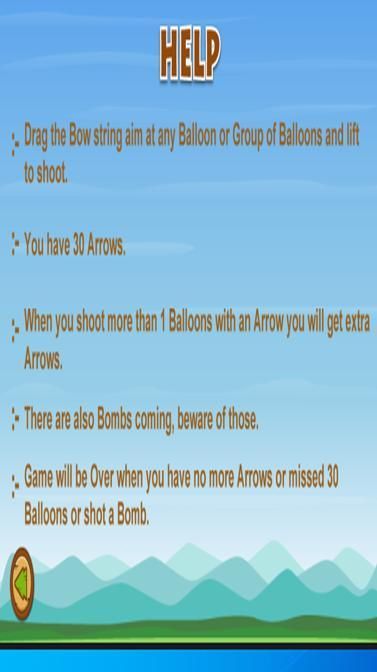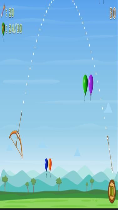 In this baloon game, you get 30 arrows to shoot the balloons, if the target is missed then you lose one arrow.