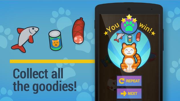 Find cat’s path is the game to train attentiveness! Kitten got lost in the dark room! Walk the kitty to the exit avoiding traps and dangers, collecting all the bonuses for pet in limited time! In the game Find cat’s path! to remember the actual path, traps and dangers (dog, vacuum cleaner, bowl of water) you have only one second! After that the night vision device turns off and you have to restore the path in your memory! Don’t let the cat get in trouble or step into a trap! Walk the pet to exit! Train your memory!