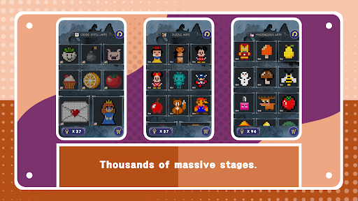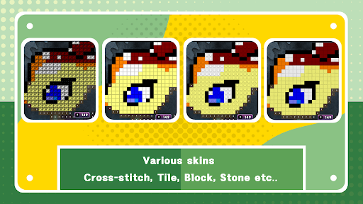 "DotsArts" merges the best puzzles like Cross-stitch,Piece Puzzle,Free Flow , Maze, Minesweeper and Sudoku which are easy to play and fun to make art picture .