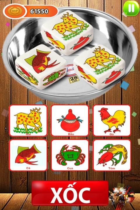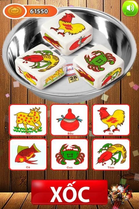 Gourd is a popular traditional and traditional game during Tet holidays. Crab is a very popular and widely loved dice game in Vietnam. Develop style simulated on the phone, professional and colorful. Be quick to download the application, the game elected crabs to experience exciting moments of entertainment and participate in the exciting bet screen party friends
