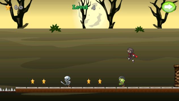 Super Ninja Run VS Monster. Help our Ninja jumpping and run to fighting with boss bone monster. By collecting stars to power and continue to fight. Enjoy with super ninja run VS bone monster every where.