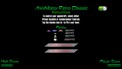 * Both Virtual Joystick or accelerometer controls