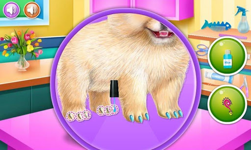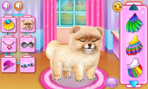Apply a spa cream and let him relax. Use that special device to clean and cut his claws after you clean the teeth and raze the surplus of hair. When the puppy is happy, move to the dressing part to design a stylish look with colorful accessories and crazy outfits for dogs. Pose and show off the work you've accomplished during this new dog game. You can even put a funny face on the dog to match your adopted style.
