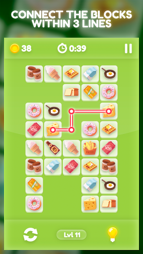 π§ Tap 2 tiles to connect it within 3 lines! (3 line maximum!)