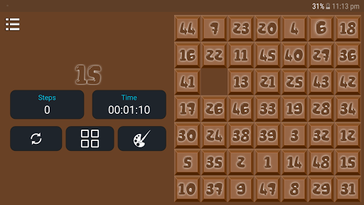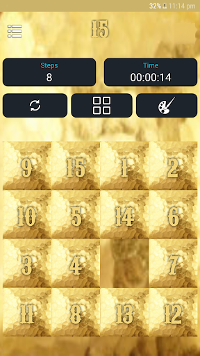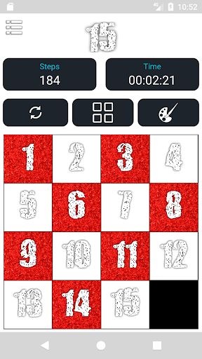 The 15-puzzle (also called Gem Puzzle, Boss Puzzle, Game of Fifteen, Mystic Square and many others) is a sliding puzzle that consists of a frame of numbered square tiles in random order with one tile missing. The puzzle also exists in other sizes, particularly the smaller 8-puzzle. If the size is 3×3 tiles, the puzzle is called the 8-puzzle or 9-puzzle, and if 4×4 tiles, the puzzle is called the 15-puzzle or 16-puzzle named, respectively, for the number of tiles and the number of spaces. The object of the puzzle is to place the tiles in order by making sliding moves that use the empty space.