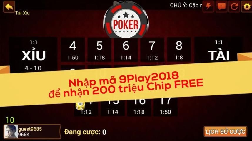 New account Giftcode 200tr, how to use: Download Game >> Reload >> Enter Code "9play2018" to receive 200 million chips.