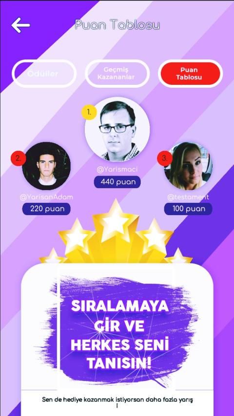 During the competition, there is a 50% joker right and a double reply right. If the contestants answer correctly, 10 points are written to the digit. Competitors accumulate points and qualify for ranking among other competitors in the application. 3 people among the contestants who get the most points per week are entitled to receive awards.