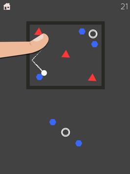 3. To do that, you have to draw a line by swiping your finger on the screen to move the main puzzle ball to that direction. It will move and bounce against the bars/ blockers according to the law of physic, and it will drop the balls / hexagons in its path.