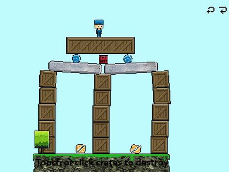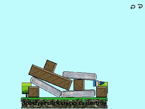 As a player, your job is to destroy the crates by touch them, it´s a psycial puzzle, so stuff will fall.
