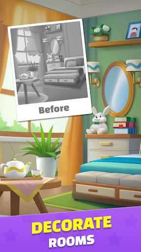 All you need to do is to match three same tiles at a time! When all tiles are crushed, you pass the current level. The game consists of many levels, which difficulty increases progressively. Take your time and think thoroughly. There are also multiple styles and layouts for you to explore. You can play with your family and friends to relax and train your brain to create a good memory. As a fidget reliever, it can also help relieve stress and calm your nerves with painting feature. Each time a level complete, you are rewarded diamonds which used for decorating your room. You can pick furnitures that you like.
