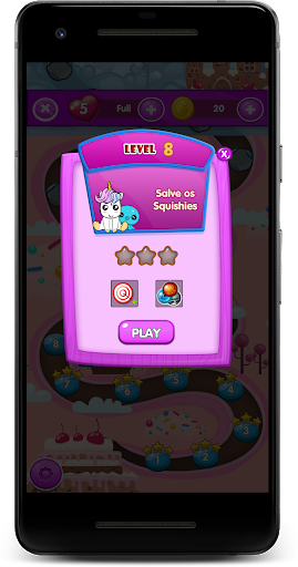 Nesse game você deve junto com a Unicornio, ir passando fase por fase, libertando os Squishies que estão aprisionados nas bolinhas poderosas da Ovelha Branca. Em cada fase, após libertar os Squishies você será passado para uma nova fase, até ser elevado para um próximo nível