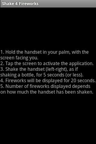 After 5 seconds, the application displays fireworks for a duration of 30 seconds. The amount of fireworks displayed, depends on the total distance the finger has moved on the screen.