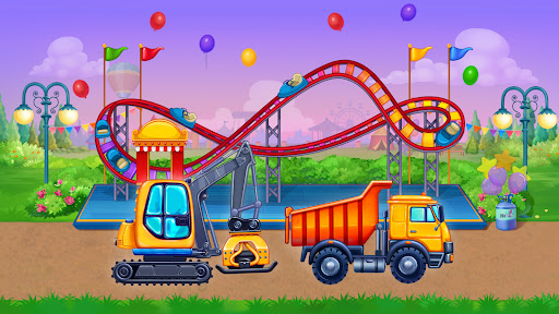 Educational games for toddlers to play are a good way of learning something new. Build a Luna Park is a construction game for kids, that will be interesting for 2, 3, 4, 5, and 6 years old boys & girls. Learn different types of trucks, vehicles, and lorries, explore how they work and create your dream Luna Park in the end! Children will love playing our toddler building games, especially if they like tractor, excavator & truck games, learning car sounds, and build-a-house games!