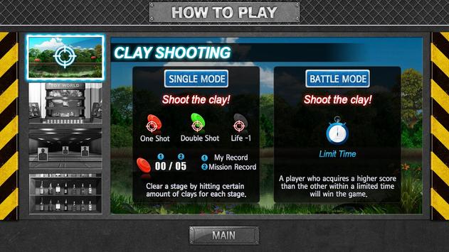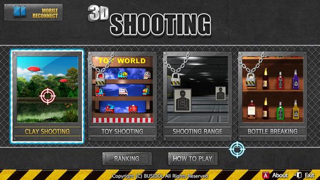 3D Shooting is composed of differen 4 games-clay shooting, toy shooting, shooting range and bottle breaking and you could enjoy diverse shooting games. By connecting TV and a mobile device, shoot bullets by touching the screen of mobile device and reload the bullets by erecting the mobile device. You could select 1 player or 2 player mode.