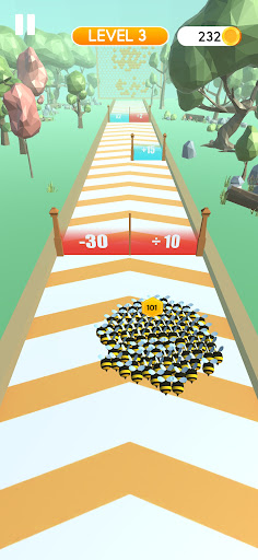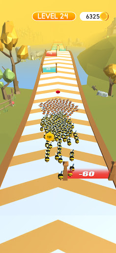 Bee Bee travels and gathers her fun friends to collect as much honey as possible and fill her honeycombs in running. However, there is not much time to look around, because to pass all the levels and collect honey, you need to collect friends – your BIG RUNNER SWARM. You can adjust the size of your team and fight with a crowd of other bees that will meet you on the way. BRING HONEY TO YOUR HIVE AND COLLECT A LARGE INVINCIBLE SWARM.