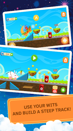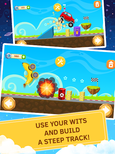 Choose from the variety of bright, funny and useful items and building blocks - you decide how to build a track for trial. Pass the levels and get the prize to open new blocks and funny cars.