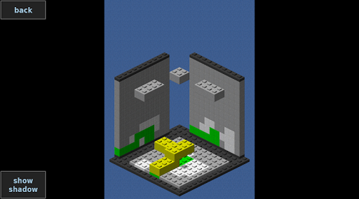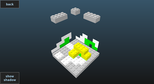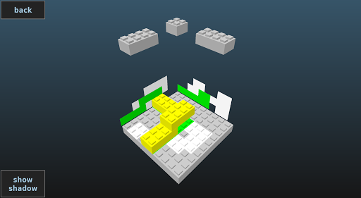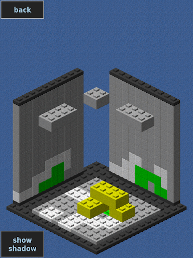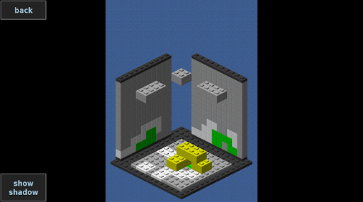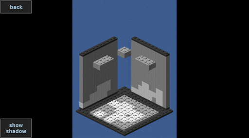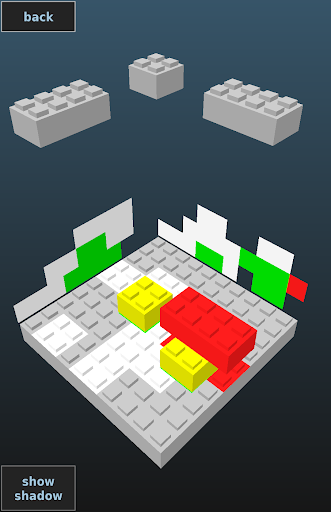 Shadow Solver is a tricky puzzle where the 3 shadows of a 3 dimensional brick model are provided. To solve a level you have to build a brick model that matches exactly the 3 shadows.