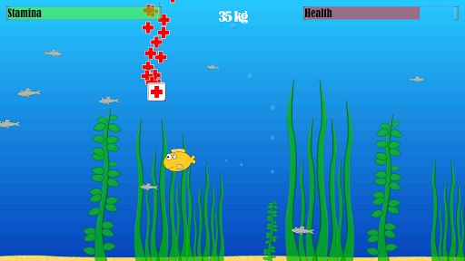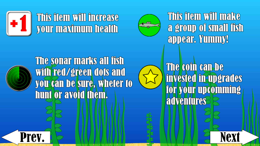 Use the special items, falling from above. The will make your fish faster, stronger and more resistant to become the best of the best in the ocean.
