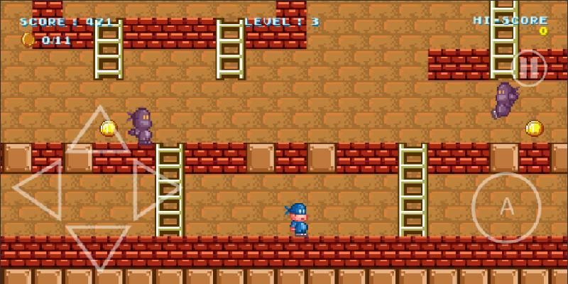 The young kid runner ninja Clawbertz can dig holes in the ground, to make his way across the lode level and also to trap the enemies. He might find different hidden bonuses in the tiles like fruits or candy to rise scores.