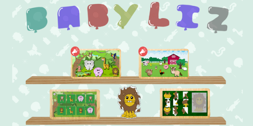 Sonidos de animales de la granja, Sonidos de animales de la selva, Sticker de animales , Memorama de animales y Rompecabezas de animales. Estos juegos estimulan el aprendizaje del niño por medio de imágenes y sonidos. Además, ayuda a mejorar la memoria con juegos como el memorama y rompecabezas.