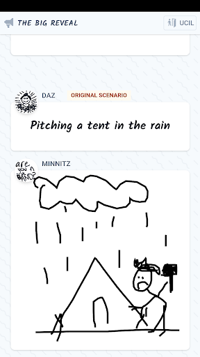 Once all players have submitted a scenario the game starts. Each scenario is passed to another player to draw. Do your best to interpret the scenario as a terrible sketch.