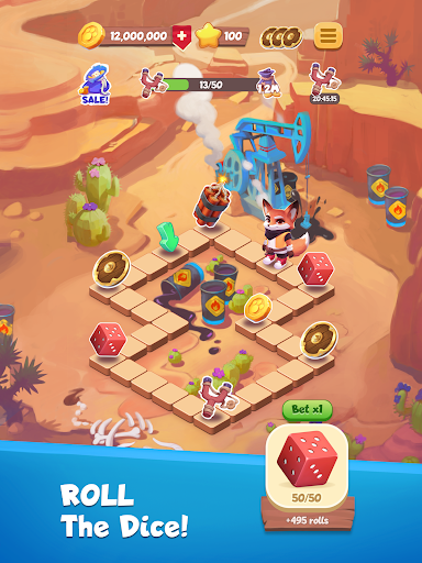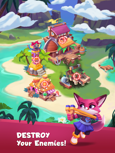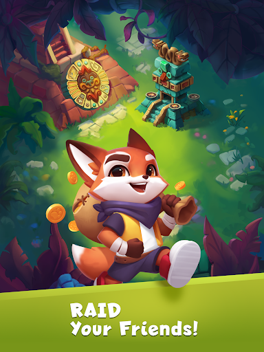 Try your luck by rolling dice to earn coins, shields, or the chance to go raiding other players' villages or hunting hidden treasure. Earn coins to rebuild your islands and progress through the levels. Win shields to protect your islands from other foxes trying to attack you.