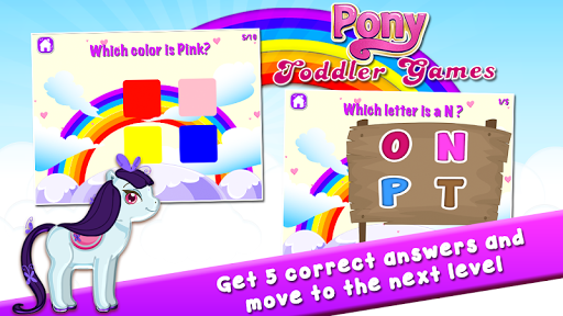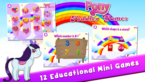 Pony Games for Toddlers is designed to help your child acquire basic concepts of shapes, colors, numbers and more. Pony Toddler for kids offers an all-in-one game for your children. It is a collection of different exciting and fun educational games.