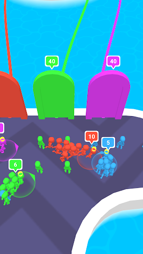 Collect units of your own color and break the gates to complete the race faster than anyone else. Attack your opponents to stop them!