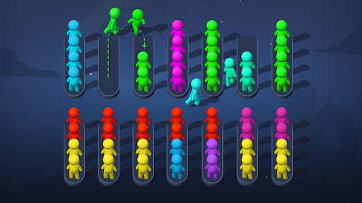 Sort the stickman of different colors into a queue of one color!