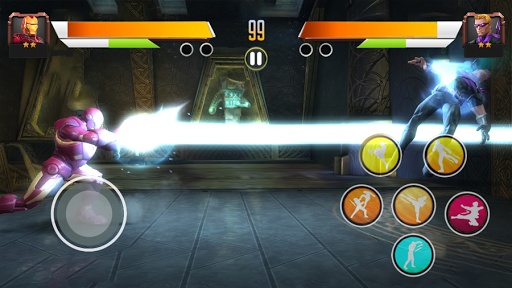 move joystick to move left and right , you have 6 attack buttons for each superhero with different combo ,
