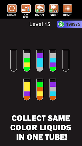 Water Sort Puzzle is a fun and addictive puzzle game! Try to separate the cup of colored water until all the colors are the same cup. It's time to know how smart you all are. A challenging yet relaxing game to train your brain!