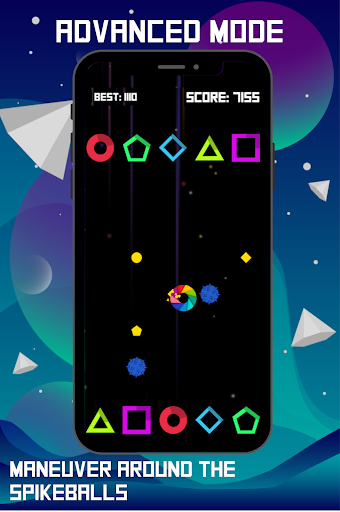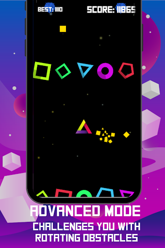 3. Advanced mode is for experienced players who search for a real challenge, just the best oft the best players with impressive reaction time and great visual memory can reach the end of the level. Towards the end the game speeds up as well as the obstacles start to rotate to truly challenge you.