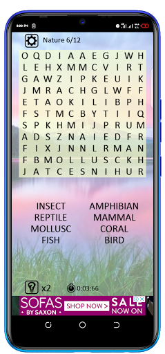 You can choose between eight levels of difficulty/search directions, play with or without timer and compare your scores with your friends and people around the world. All puzzles are automatically generated by the game app for endless fun
