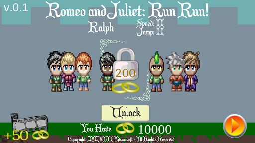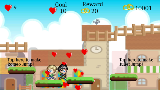 For how long can the two young lovers avoid their tragic fate? Take control of both characters across different landscapes around the Italian countryside in this endless runner and make them run and jump to meet each other and share a brief moment of happiness while avoiding any incoming hazard.