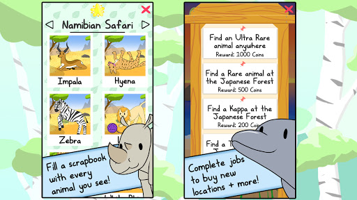 Welcome to Comfy Parks! Your job is to find all the adorable animals in our parks around the world and record them in your scrapbook. Place different foods to find different animals, or use decorations to attract super rare critters!