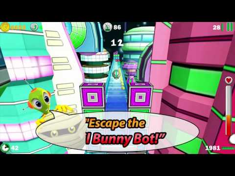 It’s a race against time as you speed through an enormous alien world, dodging deadly traps, smashing through walls and space monsters alike. But watch out – the evil Robo Rabbit is after you!