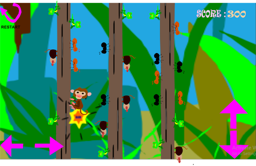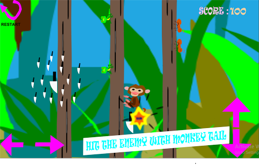 in this baboon jump game you have to avoid enemies and to beat enemies you have to attack them from the bottom of monkeys body.