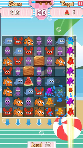 can be played by anyone, both children and adults. Sea Animals Crush is a relaxed but difficult triple stacking game.