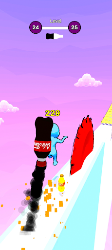 In Soda Rush 3D the race is fun and endless, get prizes with the coins and change the color of your stickman. Soda Rush is a casual game for phone easy to play, the objective of the game is to cross a path full of obstacles using the power of soda as a jetpack, you can increase the level of your soda by collecting sodas along the way, at the end of the soda Accumulated extallara in the form of a rocket to make you earn many points.