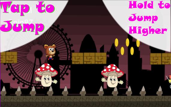 Meet Teddy, a naughty and adventurous little bear who is on a dangerous quest to gather riches. This adventurous teddy bear is on a perilous journey in the magical world. Help him overcome evil monsters in this new exciting jumping game. While he is running, just tap and long tap to make him jump and jump even higher. You must help Teddy to collect gold coins, avoid meteors, monsters, and other traps.