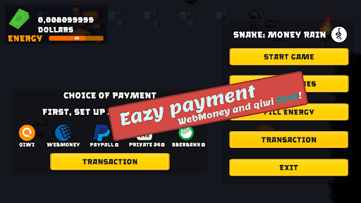 Do you want play in favorite game from your childhood? Do you want earn money from that? In our snake you can play on different levels with different bonuses. Collect coins, grow up your snake, and become a bit richer. You can use convenient payment system, and get your money as fast as you can. What are you waiting for?