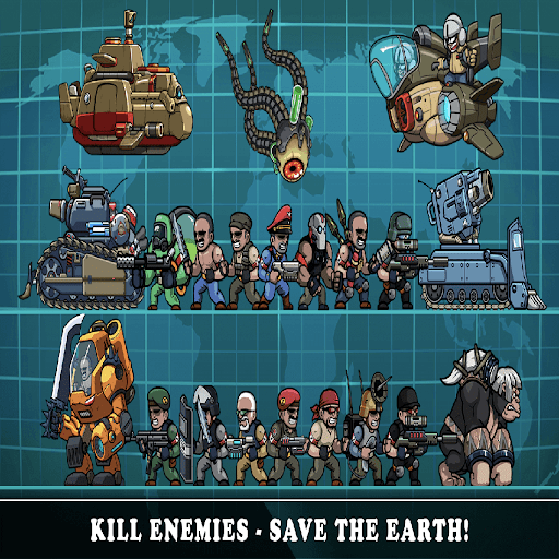 Metal Fire Slug is a 2D mobile shooter centered around an army of mercenaries trying to finish their mission to save the world, then go home and take a well-deserved nap. Choose your commando, then blow EVERYTHING up.