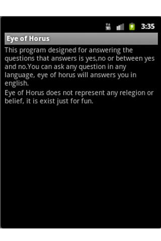 This program designed for answering the questions that answers is yes,no or between yes and no.You can ask any question in any language, eye of horus will answers you in english.