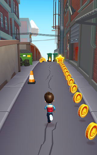 It is very easy to control, run as fast as you can, rush in the endless city scene. Be careful to avoid carrier, collect more and more coins and buy more props. There are many Paw characters patrol to choose, carlos, Mr Porter, Jake, Alex, captain turbot, and ryder....