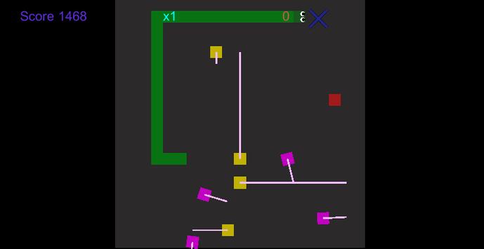 A fairly standard version of snake, except watch out for the turrets with friggin' laser beams on their heads! Eat the yummy red blocks fast enough and your score multiplier will increase! The longer you are, the more you score, and the faster you move. What's your highest score?