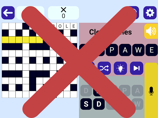 Play crossword as on a classic app, for those who want to test their sight and for those who appreciate the app and just wish to carry on playing without vocal help